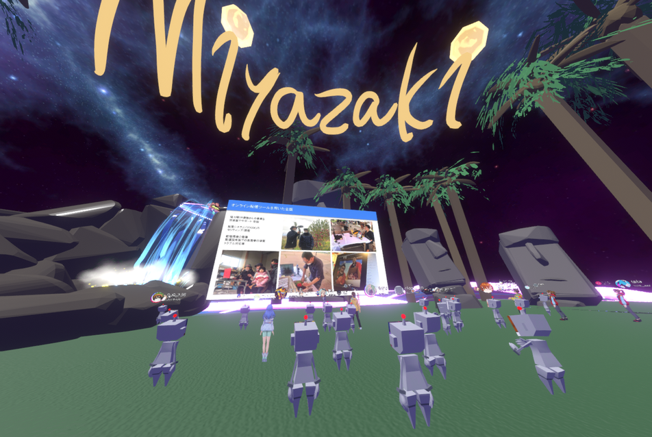 スライドを用いたり、実際にバーチャル空間をあるきながら、